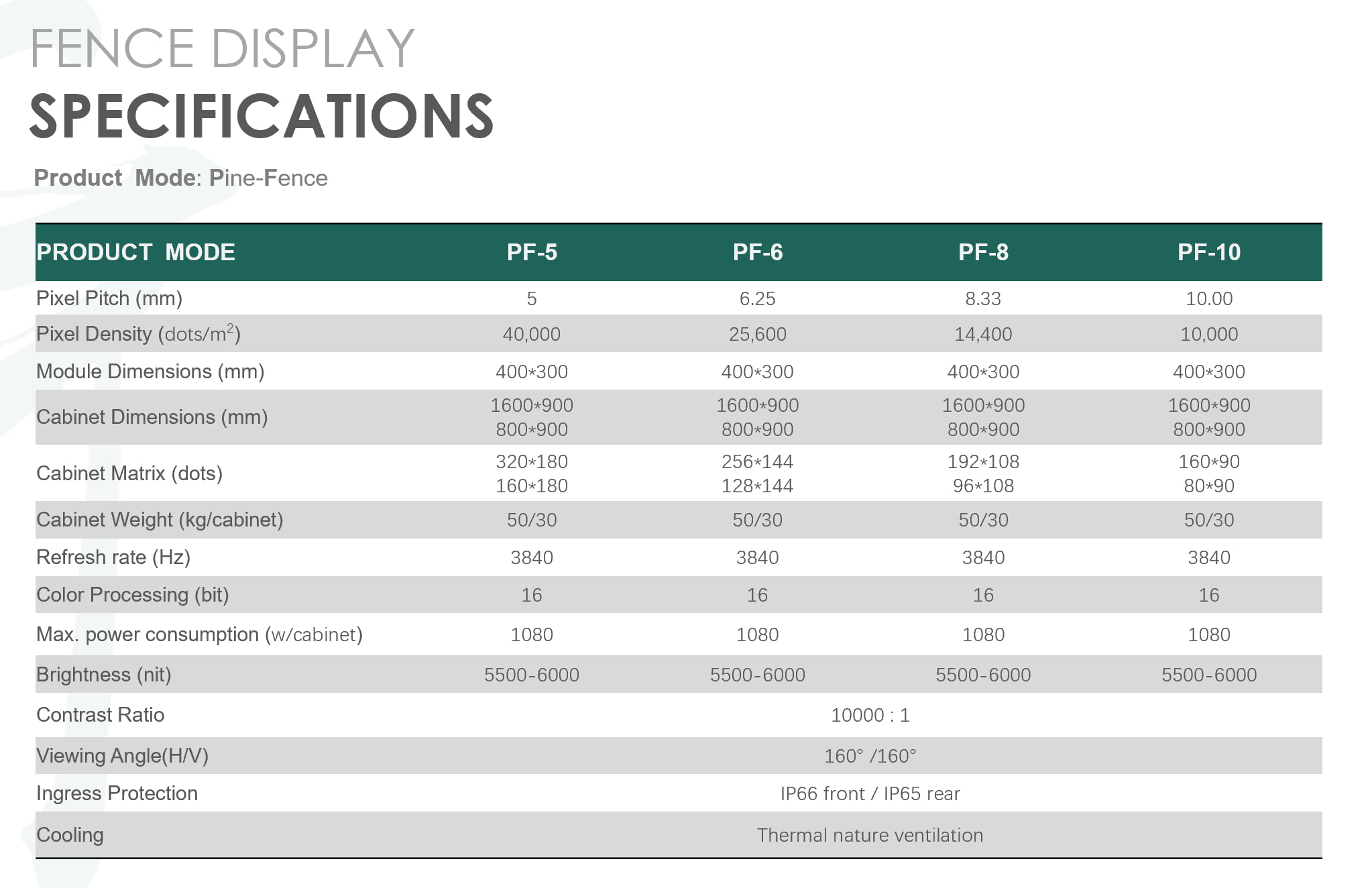 Pine series are Led displays around stadiums, with pixel pitch of 6.25mm,8.33mm and 10mm, which can meet various special requirements of stadiums for high brightness, high refresh rate, safety protection and waterproof.